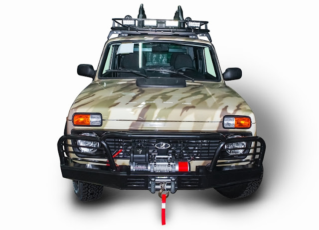 base no Lada 4x4, mas com chassis melhorado e equipamento de caça